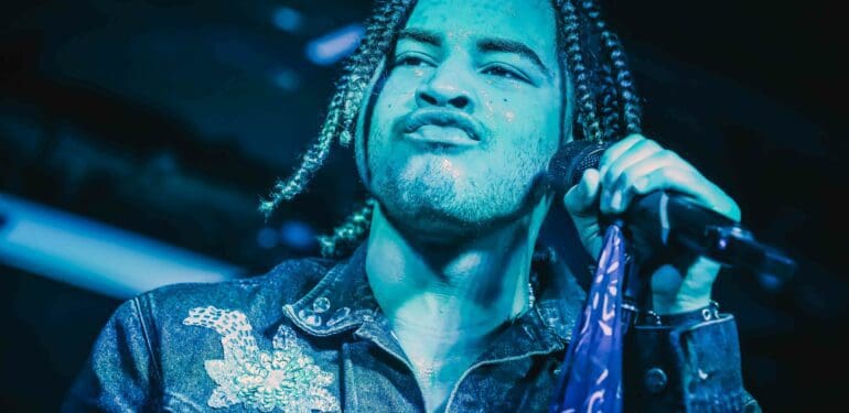 The show kicked off with “Valentino” as Goldn ran on stage to perform in heavy denim, jewelry, and a buoyant attitude. From there he got the crowd jumping with “Coco”, the second single from the new LP, and threw it back for day-one fans with “Games On Your Phone”, his underrated, slow-burn song from 2019.