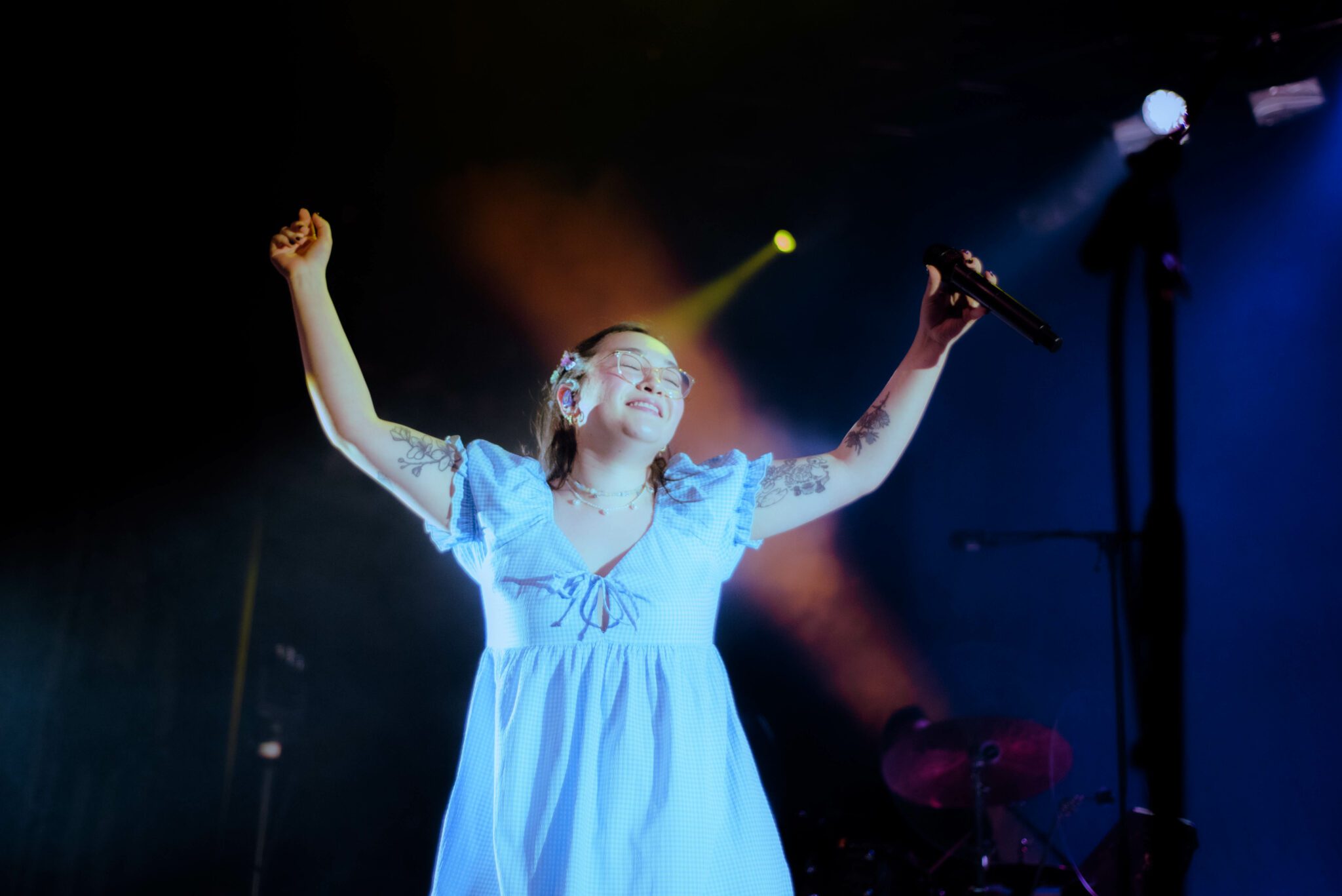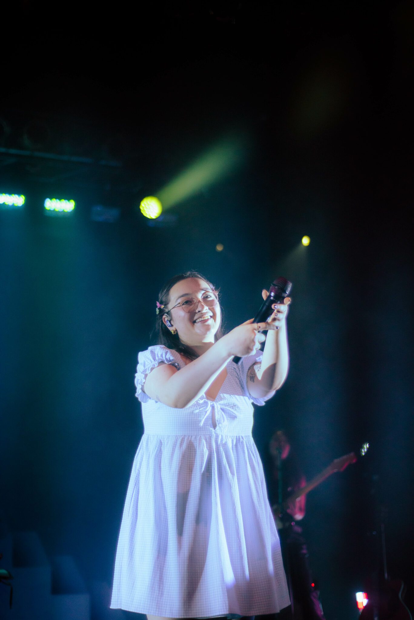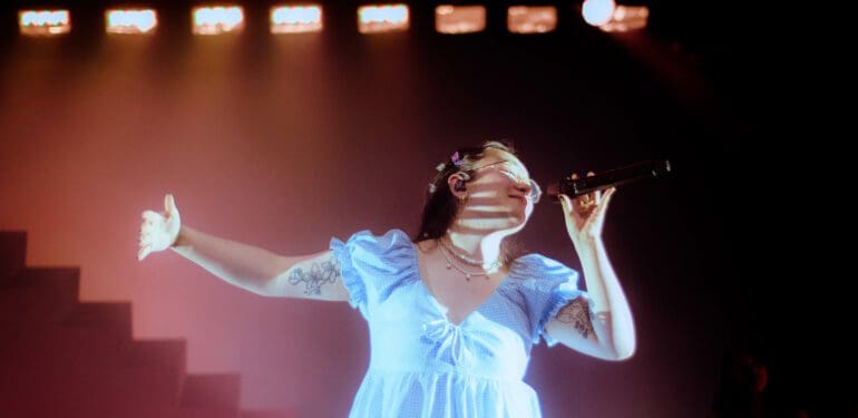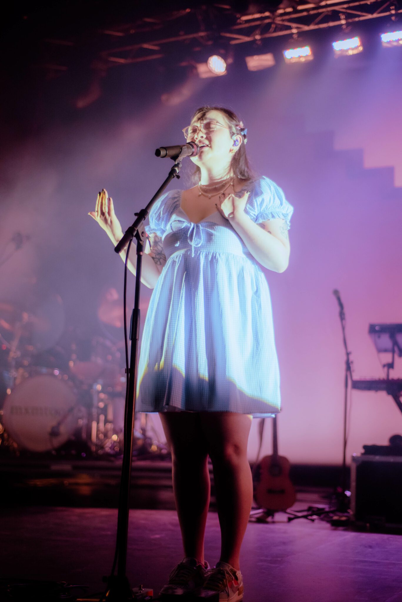 As a vocalist, mxmtoon has obvious talent. With a clear vocal tone and an expressive stage presence, mxmtoon’s performance seemed effortless, whether she was crooning the soft acoustic tune i feel like chet or belting out sustained notes in bon iver.