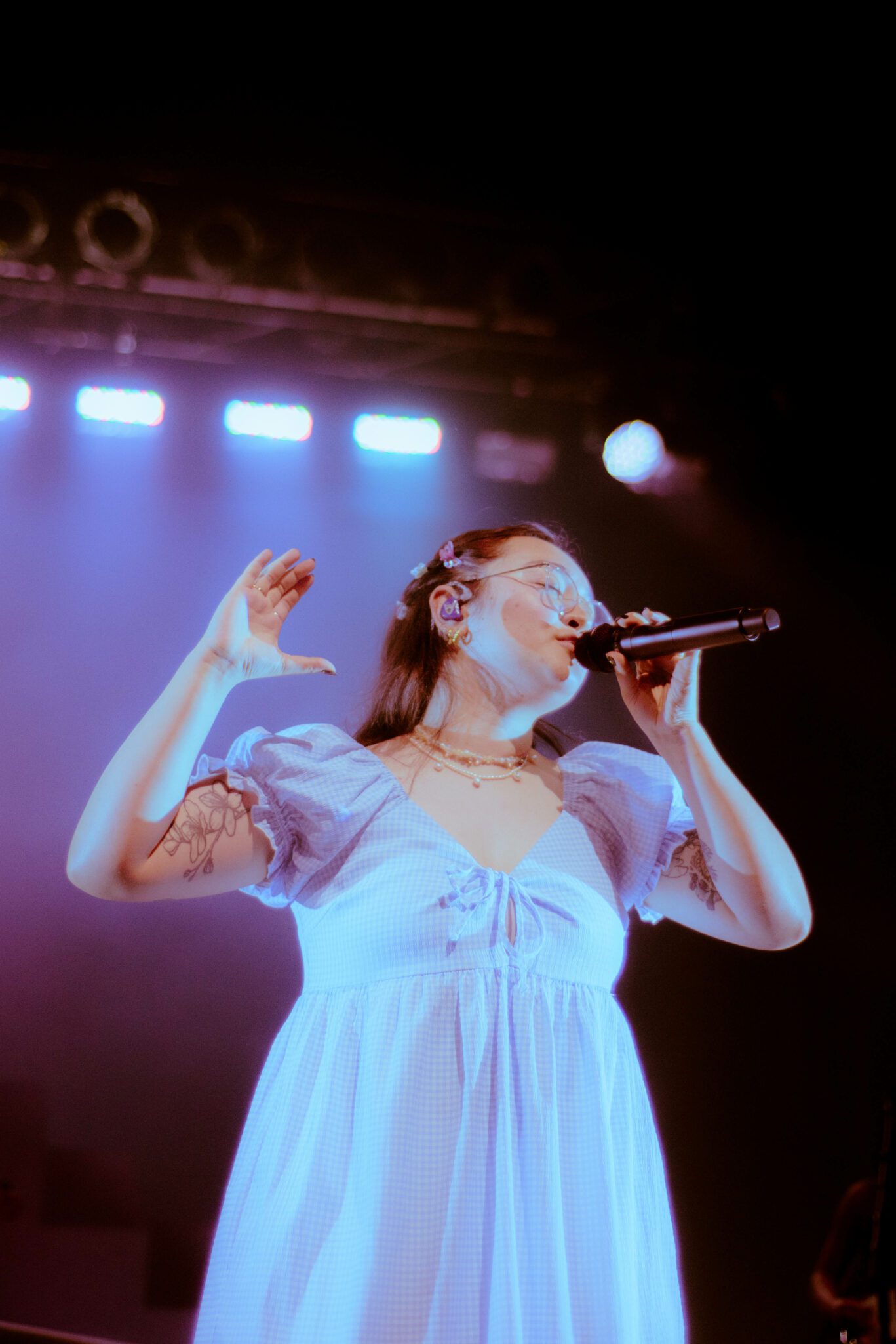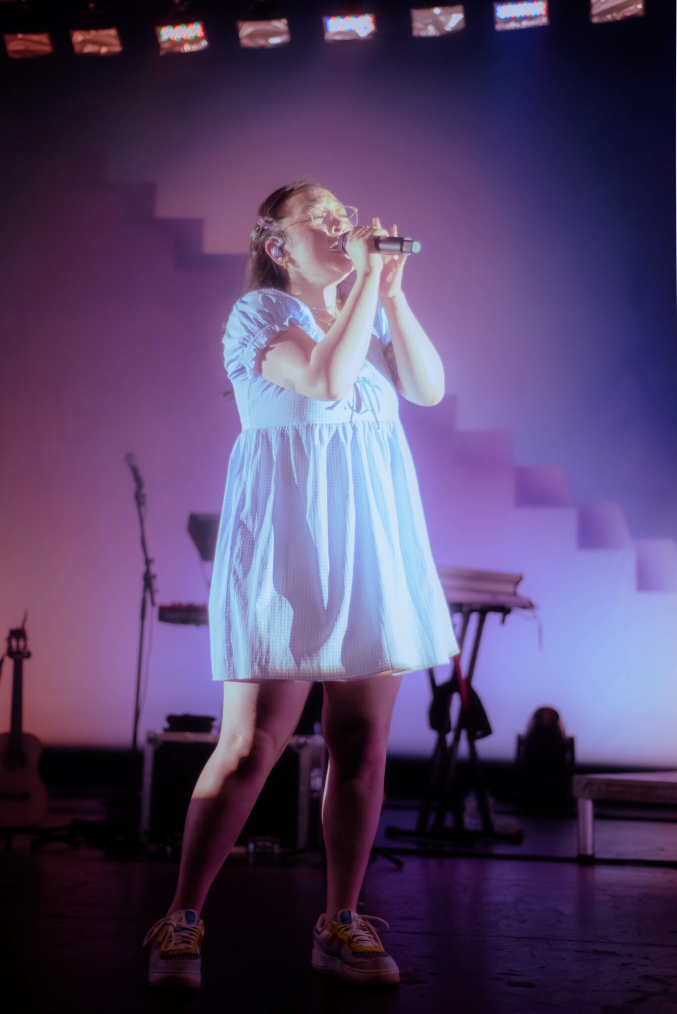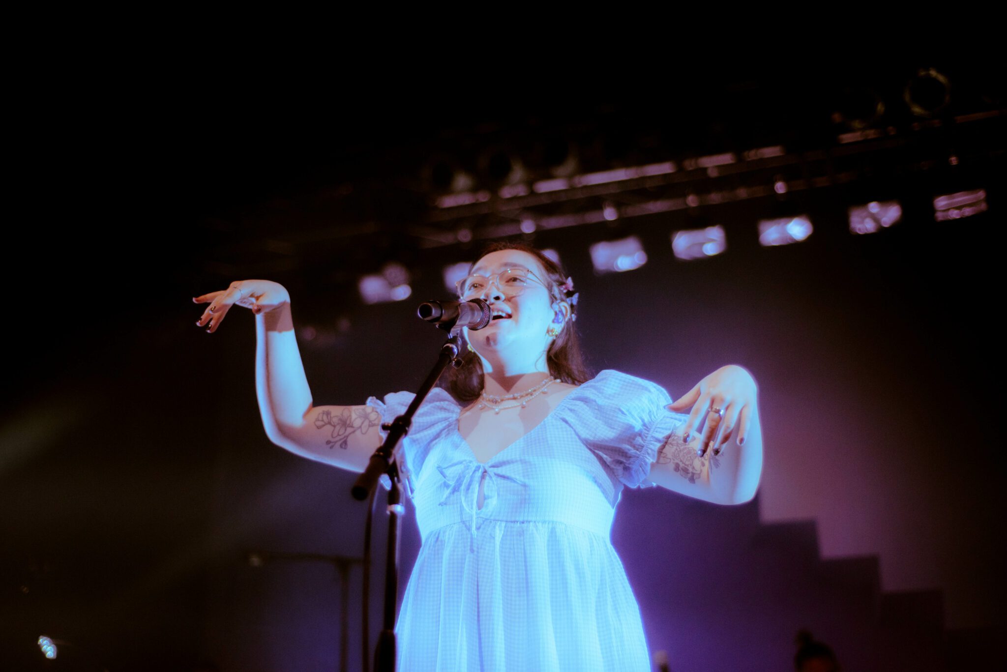 As a vocalist, mxmtoon has obvious talent. With a clear vocal tone and an expressive stage presence, mxmtoon’s performance seemed effortless, whether she was crooning the soft acoustic tune i feel like chet or belting out sustained notes in bon iver.