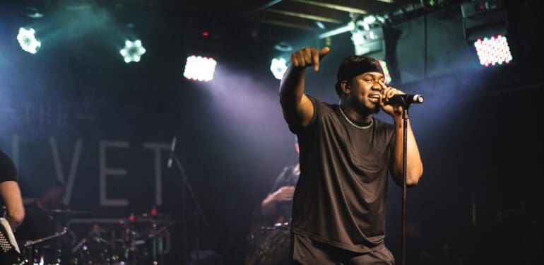 The 23-year-old Toronto-based rapper and viral TikTok star, Akintoye, performed his first-ever live show in front of a sold-out crowd at Velvet Underground on October 28, 2022. He brought with him an energetic lineup of local artists from the Greater Toronto Area, comprised by isthatshiko , mightbeleo, and Dom Vallie.