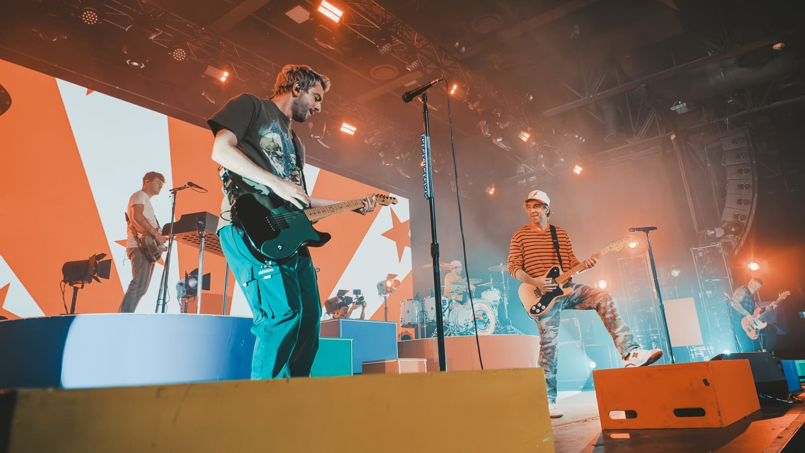 Around the middle, they slowed things down with Something’s Gotta Give and Missing You from Future Hearts which is always emotional live, especially with the crowd waving in unison and chanting every word back. In case it wasn’t already emotional, a fan gifted a handmade doll named Archibald prompting Alex to praise all the fans that bring gifts for them and even guitarist Jack Barakat taking it up a notch saying how their fans are “90% more talented than the band”. Glitter & Crimson (from Wake Up, Sunshine) and Goodnight, C’est La Vie (from Everyone’s Talking!) doubled down on this and deepened the vibe, pairing bittersweet reflection with sparkling hooks. The latter song was a recording that featured a sort of SNL type of interlude with the screen showing “We’ll Be Right Back” reminiscent of the same typeface as the late night show. An interesting visual before coming back out for the last stretch of the show and kicking the door down into Butterflies, a song that revolves around letting go and accepting change – a great song to define a band thats been around since 2003: how long they’ve come and the challenges they had to face.