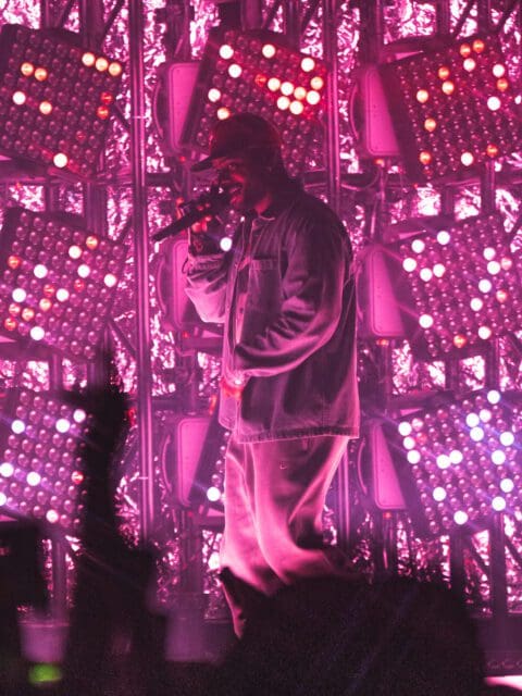 Shortly after, Bryson made his way to the stage, noticeably in line with the retro arcade-themed production, rocked a Ghostbuster fitted hat, a Selena tee under his denim shirt, and a pair of Nike Air Mags on his feet. The first couple of songs performed were poorly lit, assuming that was intended, but as his set progressed, the lighting got better as various visual light elements were used on each song. Aside from the visuals, everyone also enjoyed the song placements as they were emotionally taken back in time through performances of songs like For However Long, Exchange, and Don’t from his 2015 debut album T R A P S O U L. Sticking to his style of exploring the topics of love, emotions overflowed throughout the venue. Switching up the tone, he also sang Maria Maria by Carlos Santana acapella, transitioning to Wild Thoughts, which samples the Santana track. And in typical Tiller fashion, he ended his set with Right My Wrongs, the perfect send-off track for any R&B lovers.