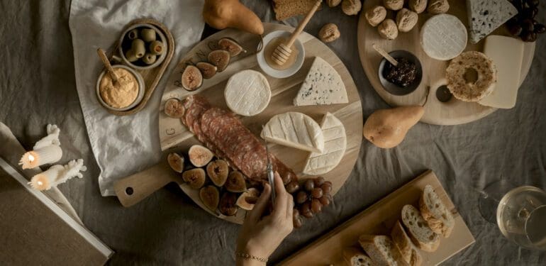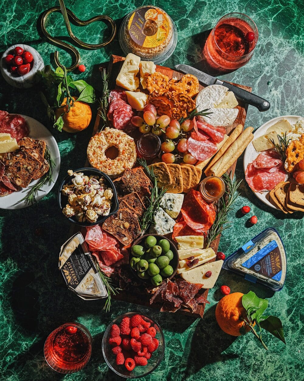 Now for the good part – building the cheeseboard! You’ve provided your friends and family with the ingredients and tools to recreate a stunning cheeseboard masterpiece, now they can assemble it together for a fun family activity.