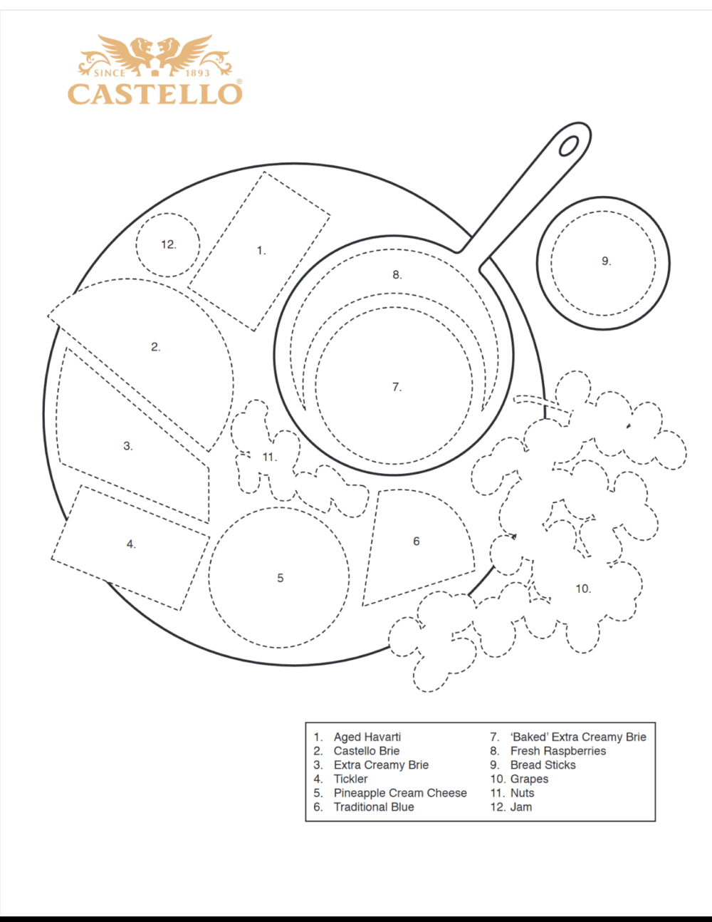 Once your cheese is wrapped, place it in an attractive open basket and roll up some paint-by-number cheeseboard templates that allows anyone to recreate six Pinterest worthy cheeseboards created by Canada’s favourite foodies. You can find all six of them here at CastelloCheese.com Here’s a sample of one by @viranlly