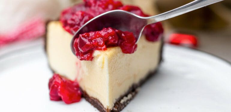 - Whisk mixture until it’s smooth. Pour desired amount over cheesecake.