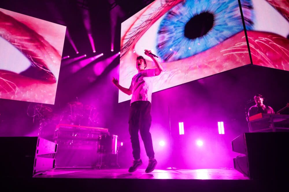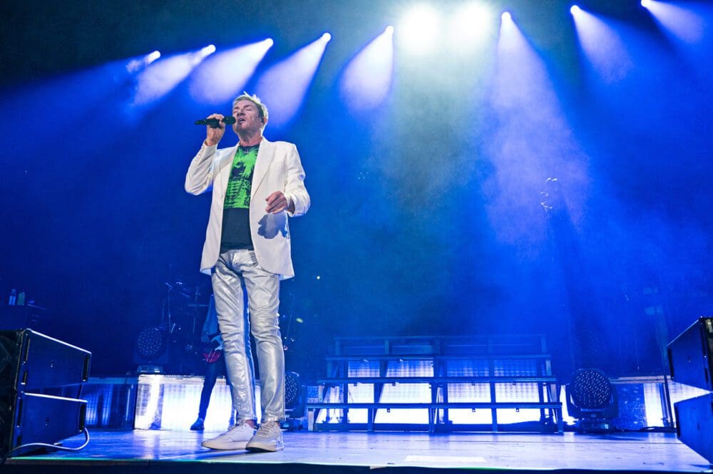Jumping back to 1984 and finding the parallels to today, this song in particular was played with the same verve and vibrancy. 26-year-old Simon Le Bon would likely be thrilled to learn that he hadn’t lost any of his vocal range and that he was still dancing ably on a stage in front of near-20,000 adoring fans almost 40 years later. Of the remaining original members, the same can be said. Roger and John Taylor, neither married to one another nor related otherwise, still remain a powerful rhythm section full of hard-hitting beats and grooving basslines that have proven timeless. Nick Rhodes remains the master of textures within the band though remains as stern and stock-still onstage now as he did then. Perhaps it was all the work he had to do back then before live-sound-tech-administered backing tracks became an accepted norm. Another oldie, Friends of Mine, from the first album was among a handful of DD songs that showed their darker side. Using real-time technology, they transformed audience members into monsters on the video screens, most of whom were in the front row and couldn’t see their alter egos on the stage wing screens. On this note, the stage design was beautiful, incorporating two v-shaped lighting trusses that supported v-shaped partially see-through mesh screens on motors that raised and lowered to alter the stage shape on demand. Sticking with the era, Careless Memories followed before Le Bon introduced the next song. Calling Ordinary World a song about self-redemption, he dedicated it as they have sadly in recent times to the people of Ukraine, saying “We support them in their struggle and wish nothing more than life and happiness in their own country. Their own ordinary world.” He, next, introduced a previous collaborator, Canadian pop star Kiesza to lend her formidable voice to Come Undone.