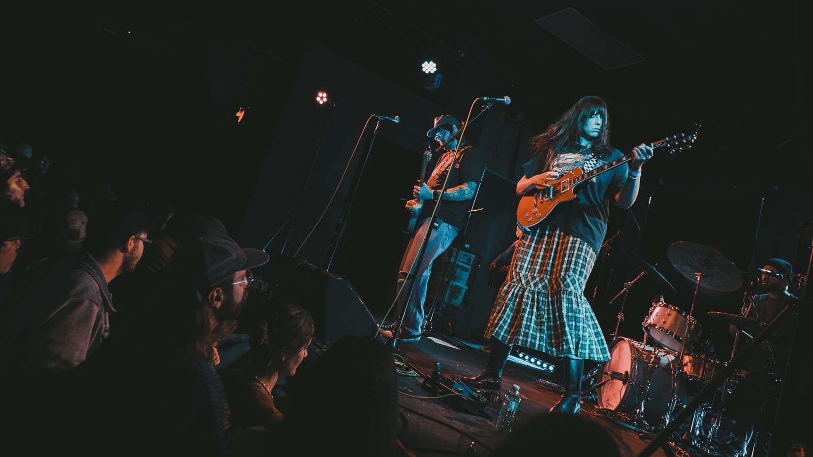 The stage setup had two drum kits ready to go with the one on the left having the stickers spelling out “VIAL”, a 3-piece (with support from Gabs!) playing a style of punk that’s explosive as it comes especially live on stage – the blast of energy from their opener Ego Death tells you a lot about what to expect for the rest of the show. Complete with a “Furby snake” wrapped around one of their mics, guitarist KT Branscom, drummer Katie Fischer, and bassist Taylor Kraemer are a triple threat especially with all three being able to share vocal duties across their catalogue of tracks and just like their set, it’s a great blend of indie-rock, pop melodies, and raw punk aggression. The stretch from the Nirvana cover of Territorial Pissings, into their newest single IDLE HANDS from late October this year that hits like a truck, then into the satisfying “pop-iness” of bottle blonde, really highlights their impressive range as a band through their releases thus far. Tracks like Creep Smoothie and their closer Piss Punk also just manage to etch itself in the best way into your brain with its catchy lyrics and guitar work. It’s no doubt this trio can rock and really sets the bar on making the most out of Lee’s Palace’s stage.