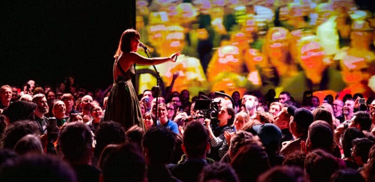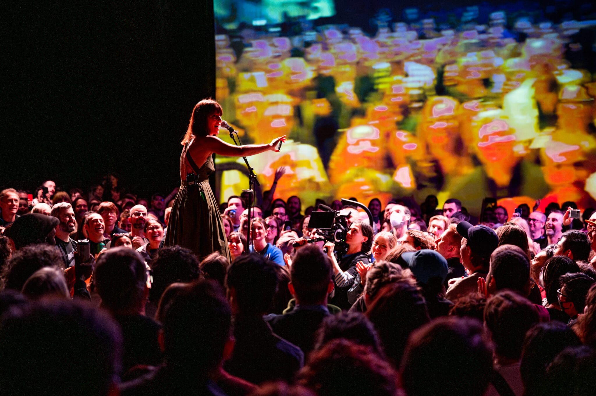 Multitudes, released this spring, adds love and loss as an influence with the singer/songwriter adopting a baby girl shortly before losing her father, notable abstract painter Harold Feist. Presumably, these emotions were in part the inspiration for the Multitudes performances. Starting with Feist in the middle of the audience as a solo acoustic performance, it redefined the term intimate. With nowhere to hide and surrounded by onlooking fans, there was no unlinking the artist output from that of the audience. Later moving to a full band set onstage, the show is equally dependant on video as well as the music. There is a surprise element to the entirety of the performance that prevents me from reviewing the show in great detail. I’ll just leave it at that and say that if the opportunity arises, watch the whole show either live or online.
