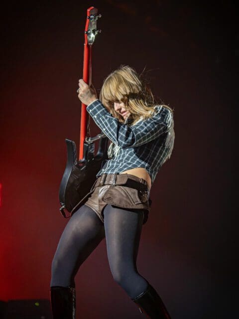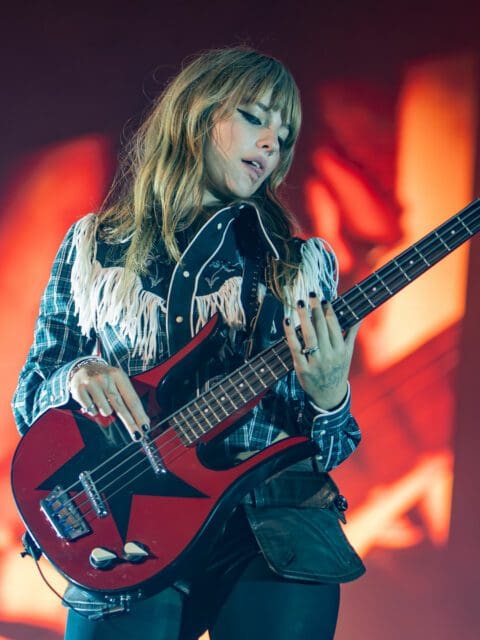 At that point of the night, it was time to hear the presence of the Italian-born and descendants among the crowd; Måneskin called out for them and invited them to sing along to the song MAMAMIA. All the Italian flags among the fans could be seen high in the air. Then came a cover of the song Humble by Kendrick Lamar, IN NOME THE DEL PADRE from the album Teatro d’ira: Vol. I and BLA BLA BLA came next.