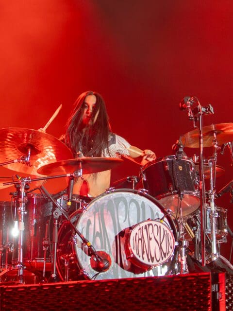 After the acoustic segment, the main stage lit up again with a voltaic ramp of lightning, with Victoria De Angelis and Nathan Torchio performing a bass and drums solo to welcome back Daminao and Thomas. They then performed their most famous song I WANNA BE YOUR SLAVE, which was probably one of the highlights of the night since the band members weren’t shy when it came to interacting with their fans. During the performance of the song, De Angelis decided to come downstage, jump among the audience and crowd surfed. After the bass player returned to the stage, Damiano joined the audience on the floor. He invited all present to go down and jump with him at the count of three to shake the Scotiabank Arena’s floor.