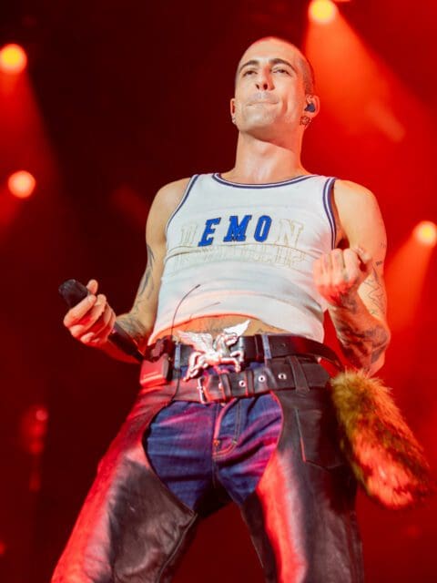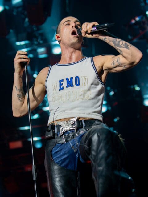 After the first three songs, Damiano finally took a moment to welcome their fans and continued with Måneskin’s most recent single, HONEY (ARE U COMING?), followed by the song SUPERMODEL. After the spirited rock segment, it was time for a short break, which gave way to a slower tune like Coraline with Italian lyrics from the band’s second studio album, Teatro d’ira – Vol. I.