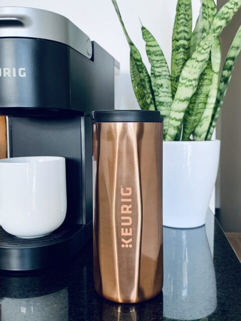 The Keurig 14oz. Faceted Travel Mug is built with the durability to handle your day-to-day and the unique design to make a statement with every sip. This unique travel mug keeps cold drinks cold for up to 8 hours and warm for up to 4 hours. It’s available in Copper, and at under $20, it makes the perfect gift or stocking stuffer.
