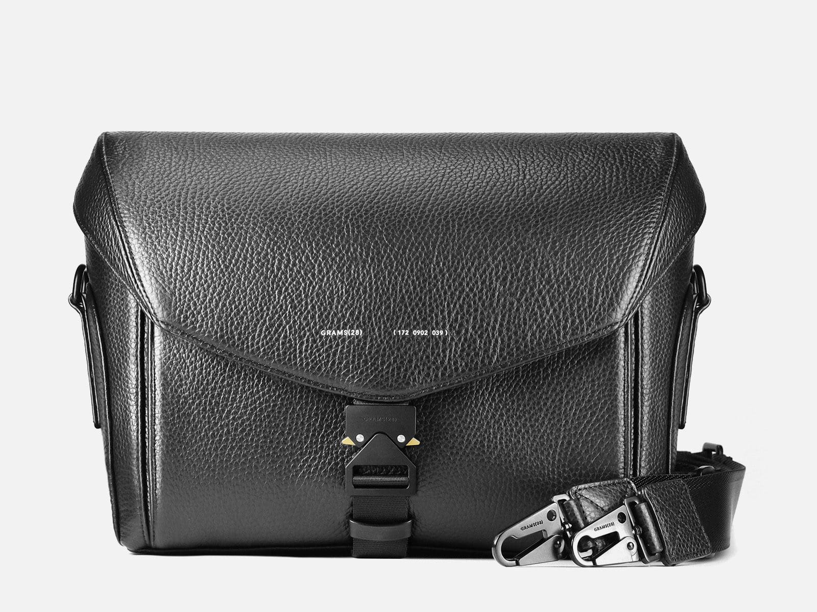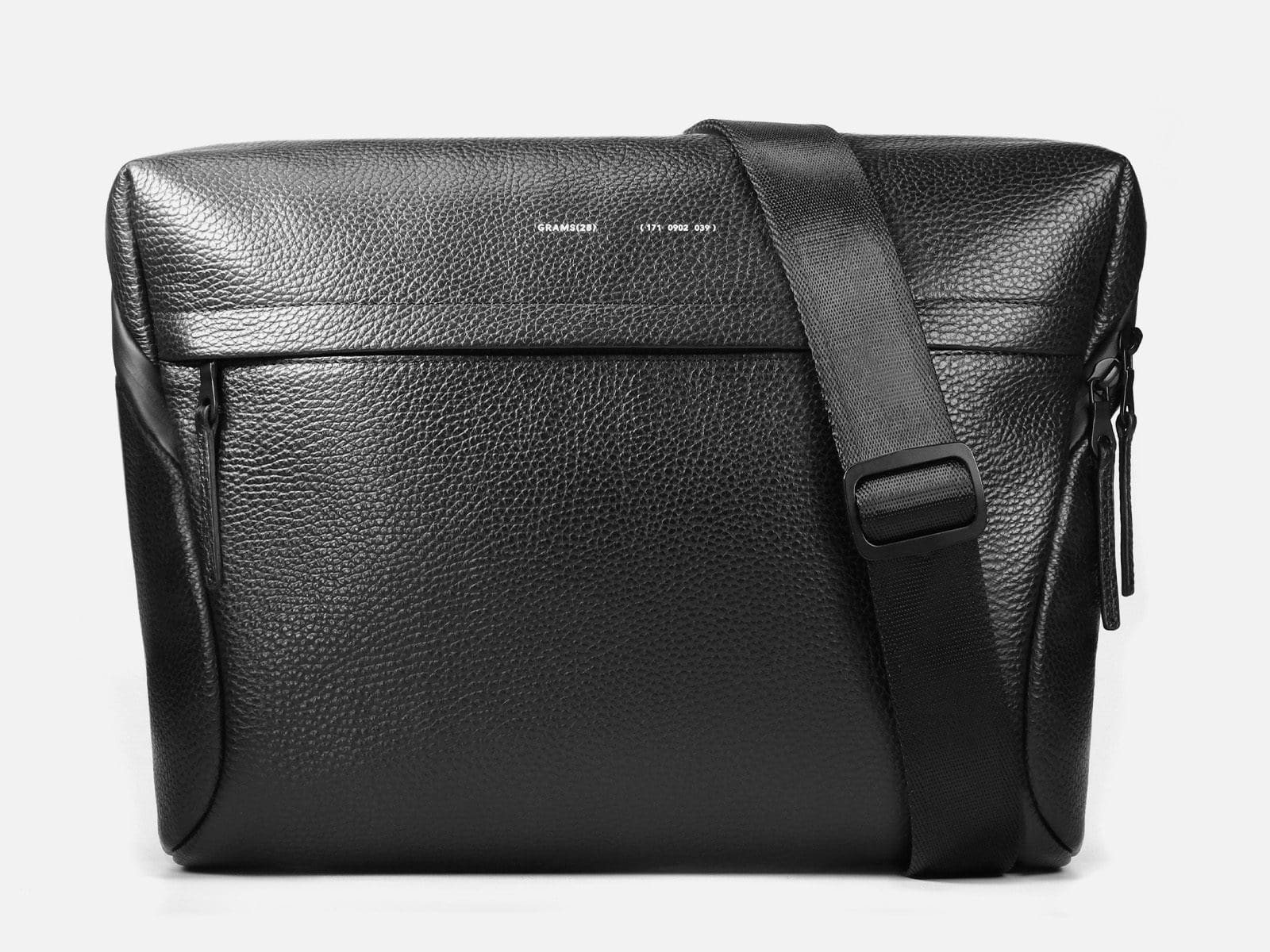 The flap on the front of the bag seals shut by a stylish side-release buckle. The flap itself, like all GRAMS28 bags, has a unique product code that transparently breaks down the bag’s production origins. The 172 Camera Sling’s code is 172 0902 039 which is explained as (1) carry goods (72) the product code (09) tanned at Mastrotto (02) the material is full grain pebbled leather and (039) the bag was tanned in Italy. The rear of the bag features a thin zippered pocket suitable for documents. With the front flap open, a large expanding zipper pocket is revealed as are webbed slots perfect for holding memory cards. The back side of the interior has a pocket with deeper padding, presumably to hold a tablet. The padding also forms a wall of the camera area. Two folding dividers are supplied to section off cameras and lenses or other accessories. Keeping the bag on your body is a 38mm wide nylon strap that extends from 105cm to 165cm in length.