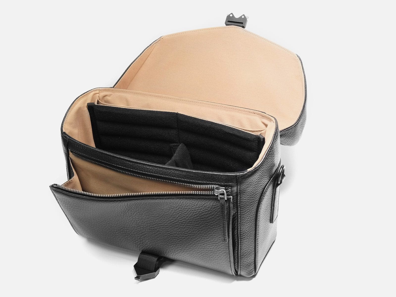 The GRAMS18 172 Camera Sling is a perfect bag for times when you don’t need a ton of photo gear, but when you just need enough. It measures 32cm W x 22cm H x 12cm D ( 12.5” W x 8.6” H x 4.7″ D ) and its empty weight is 890g. The thing I love about this camera bag is that it doesn’t LOOK like a camera bag. When a photographer is walking around with expensive camera gear, known camera bag branding can stand out loud and clear. The 172 Camera Sling looks like any leather bag, while clearly not functioning as any leather bag. This being said, GRAMS28 products are obviously made from high-quality leather, straps, and buckles so while not screaming ‘camera bag!’, a luxury bag like this is going to draw attention, hopefully just the admiring kind.