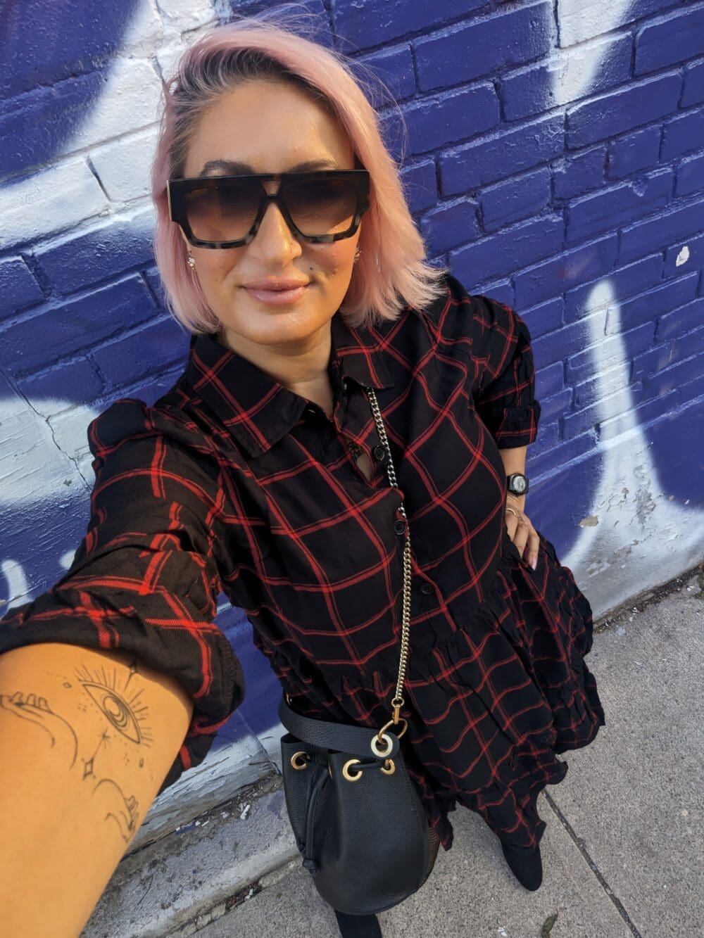 Back in the 90s, plaid shirts, specifically in flannel, and typically oversized and unbuttoned, were a signature grunge look. While even 30 years later I still love a warm and fuzzy plaid flannel shirt, both to tie around my waist or to wear on a fall day, I knew it was time for an update. I love this dress from Buffalo because it combines the classic buffalo plaid look popularized in the 90s, with a fun and flattering baby doll dress silhouette.