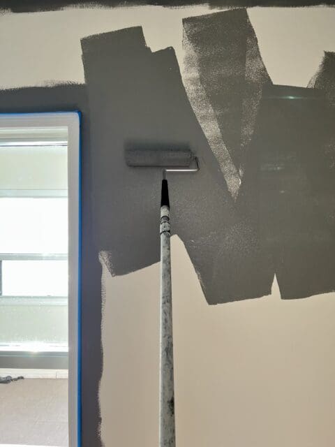 - Start Painting – When I was younger and worked with my dad in construction, I remember the painters always did the trim first, aka anywhere that a big roller won’t be able to go. Now you can use a regular paintbrush, foam, edger, whatever works best for you. I have always used a paintbrush. So, paint around the windows, door, baseboard, and fixtures, and leave that to dry. Later, return to roll your first coat with a roller covering the remaining space and leave it overnight to dry thoroughly.