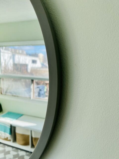 - Prime and Paint – If the walls aren’t too bad, you can probably just paint, but to be safe, you can do one of two things: Prime the walls first or buy a paint plus primer combo in your desired colour. Chances are you might have to do a second coat, but see how it plays out after the first. (Paint bought from Home Depot: Mountain Mist, BEHR Interior Eggshell Enamel Paint & Primer)