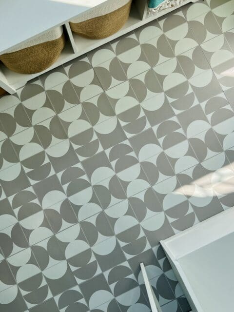 - Redo the Floor (then wait five days) – While I’m aware not everyone will want to redo their Floor, there are some straightforward ways to do so. Best case scenario, you rip out the flooring down to the wood, tile the floor, put down hard food, etc. Still, in many older places, there are so many levels of Floor that have all glued themselves together it just isn’t always an option, so we found some excellent peel and stick vinyl tiles and tiled them right over the old Floor that was already there. We were able to do so as the existing Floor was reasonably level, the Floor was still relatively low even with multiple layers, and we scrubbed the life out of the old Floor before tiling over. (Flooring also from Home Depot, FloorPops Eclipse 12-inch x 12-inch Peel & Stick Vinyl Tile)