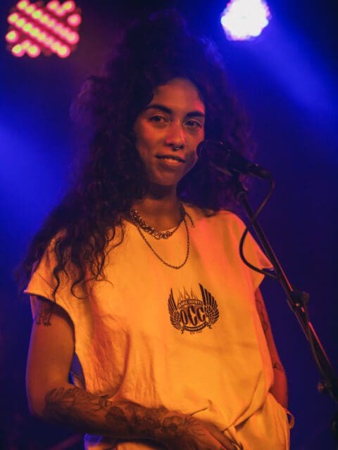 At Toronto’s Velvet Underground, De Souza entered the stage immediately, launching into ‘Bad Dream’ from the aforementioned 2021 album, slowly singing its initial muted verses before segueing into its fast-moving chorus. Upon its conclusion, she then segued into ‘Hometown’, one of the main highlights lifted from her 2018 debut, I Love My Mom.