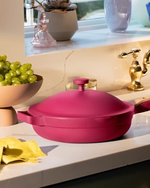 From the famous Knife Trio to the handmade ceramic dinnerware and glasses, Selena’s got your prepping, cooking, and serving needs covered, including The Always Pan and the Perfect Pot!