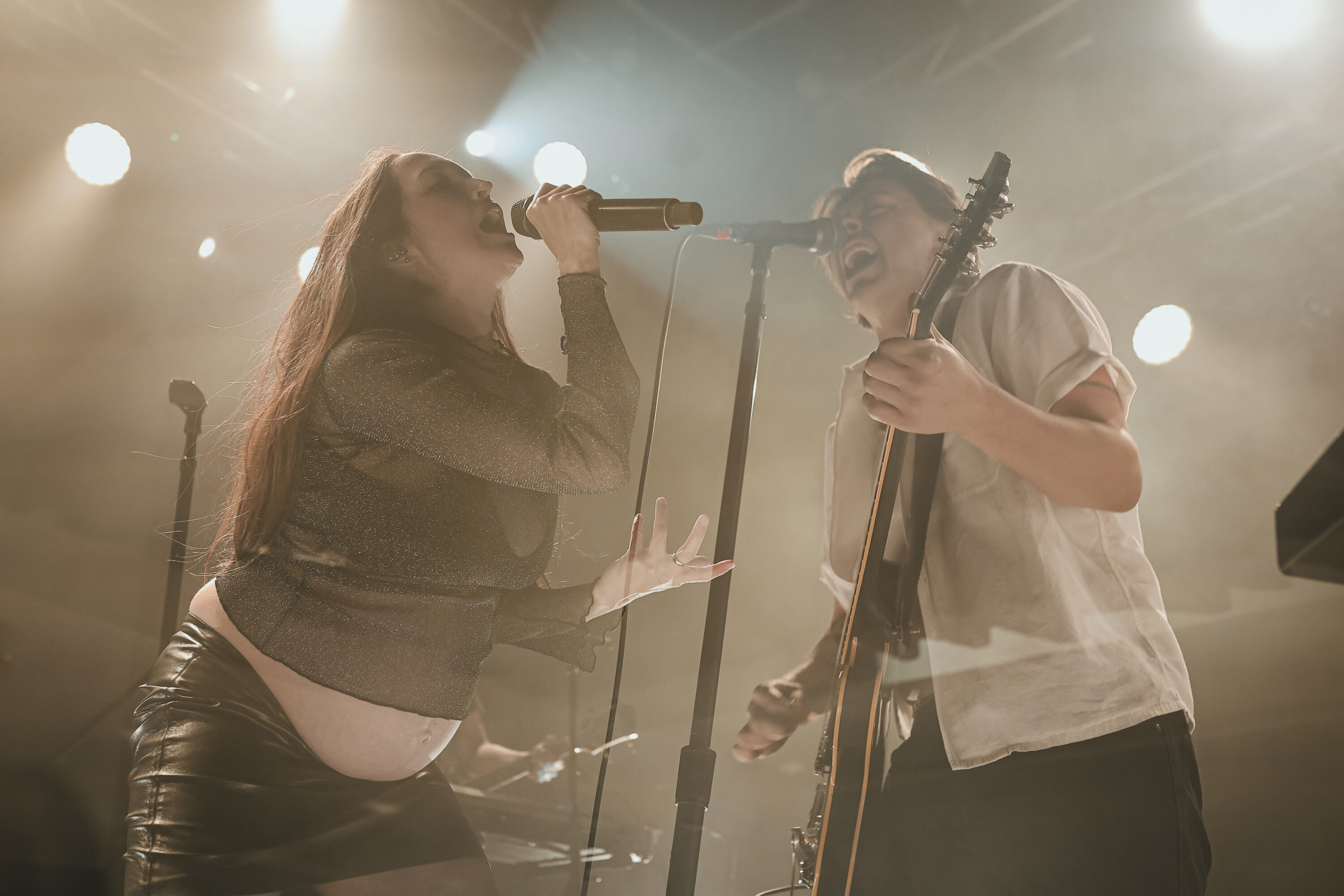 July Talk’s performances are known for being unpredictable, ever‑changing, and emotionally driven. But the most surprising and moving moment of the night came from Leah Fay, who graced the stage with a radiant mix of power and grace, her pregnant belly front and centre. As a fellow mom, I watched in absolute awe. Pregnancy is exhausting on its own, never mind performing in front of a packed room. But she moved with such effortlessness and strength that it became, for me, the highlight of the entire show.