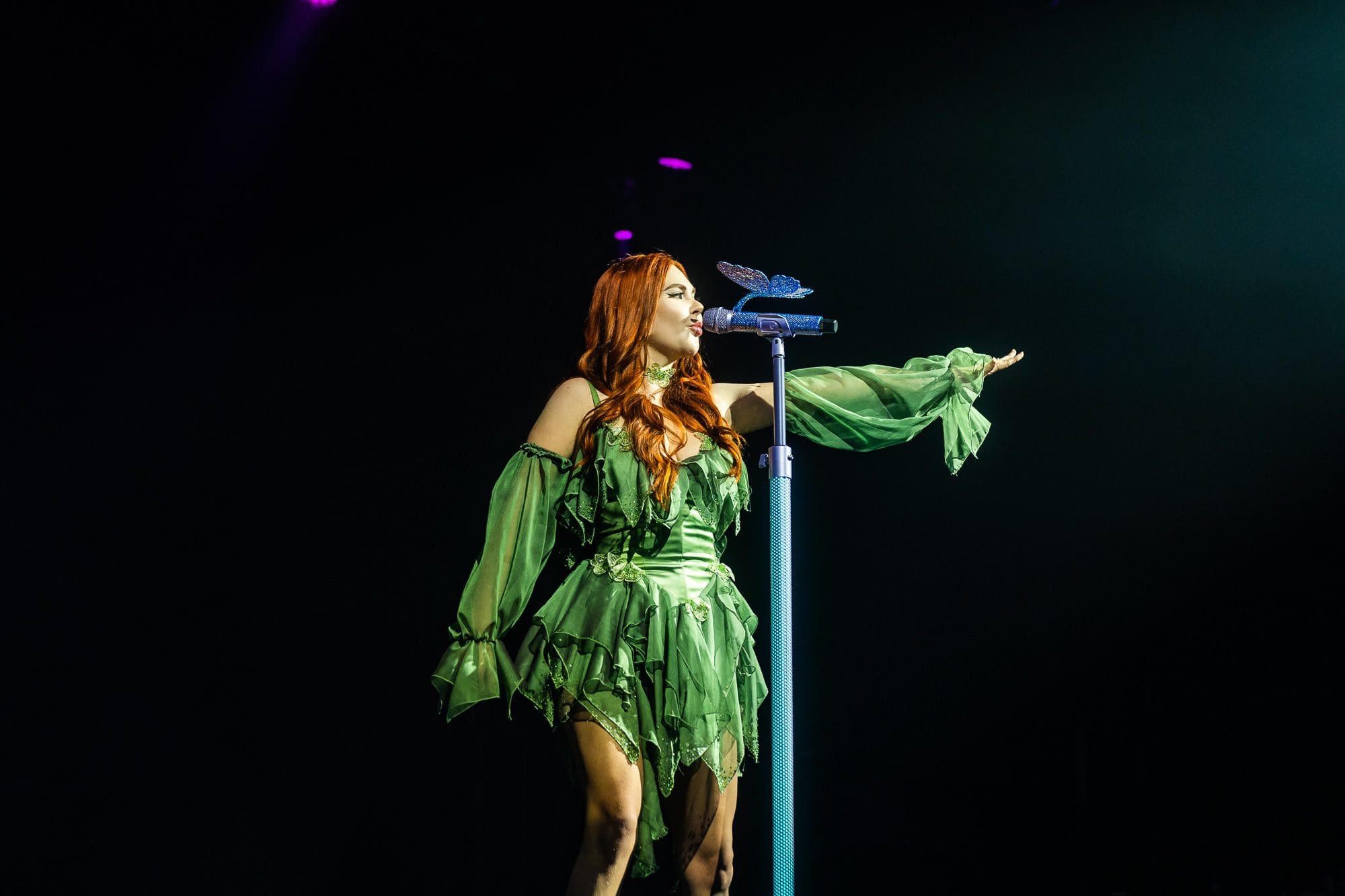 Kicking off the night was Maisy Kay, a London native and Los Angeles-based singer-songwriter. She had excellent stage awareness as she swayed and danced while performing her songs. She also had an eye-catching glittery butterfly microphone, which grabbed everyone’s attention. Her cover of Running Up That Hill by Kate Bush highlighted her set.