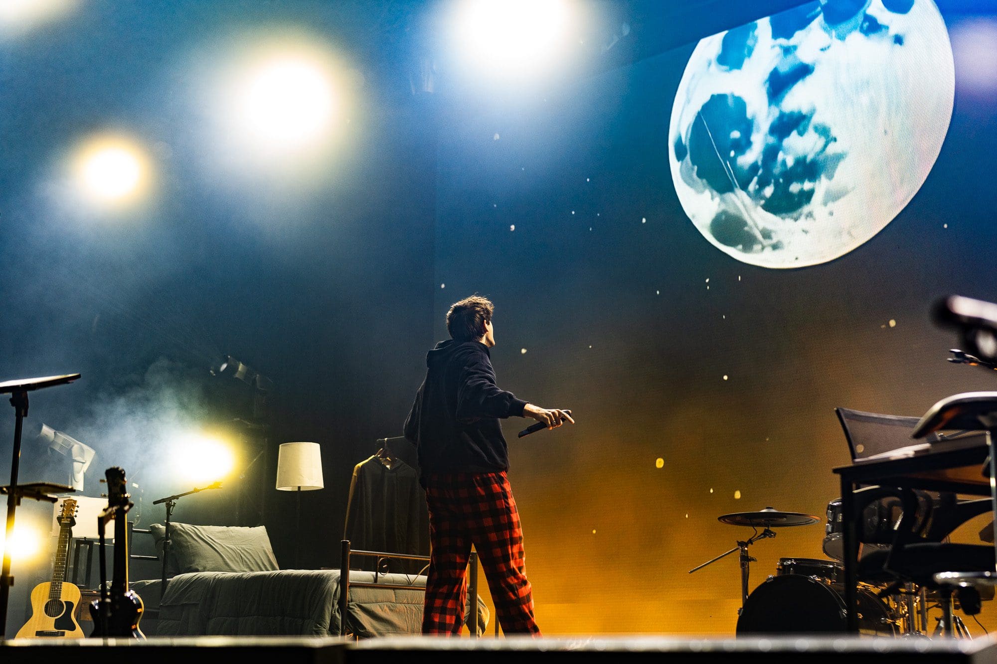 JVKE slowly approached the stage, sporting a cozy outfit, pajamas and a hoodie. For the first segment, he performed tracks like this is what falling in love feels like, which is the first theme of his set, moon and back, and Dandelion. The video boards displayed immersive visuals that captivated the audience as he moved around the stage and made eye contact with his fans as they sang with him.