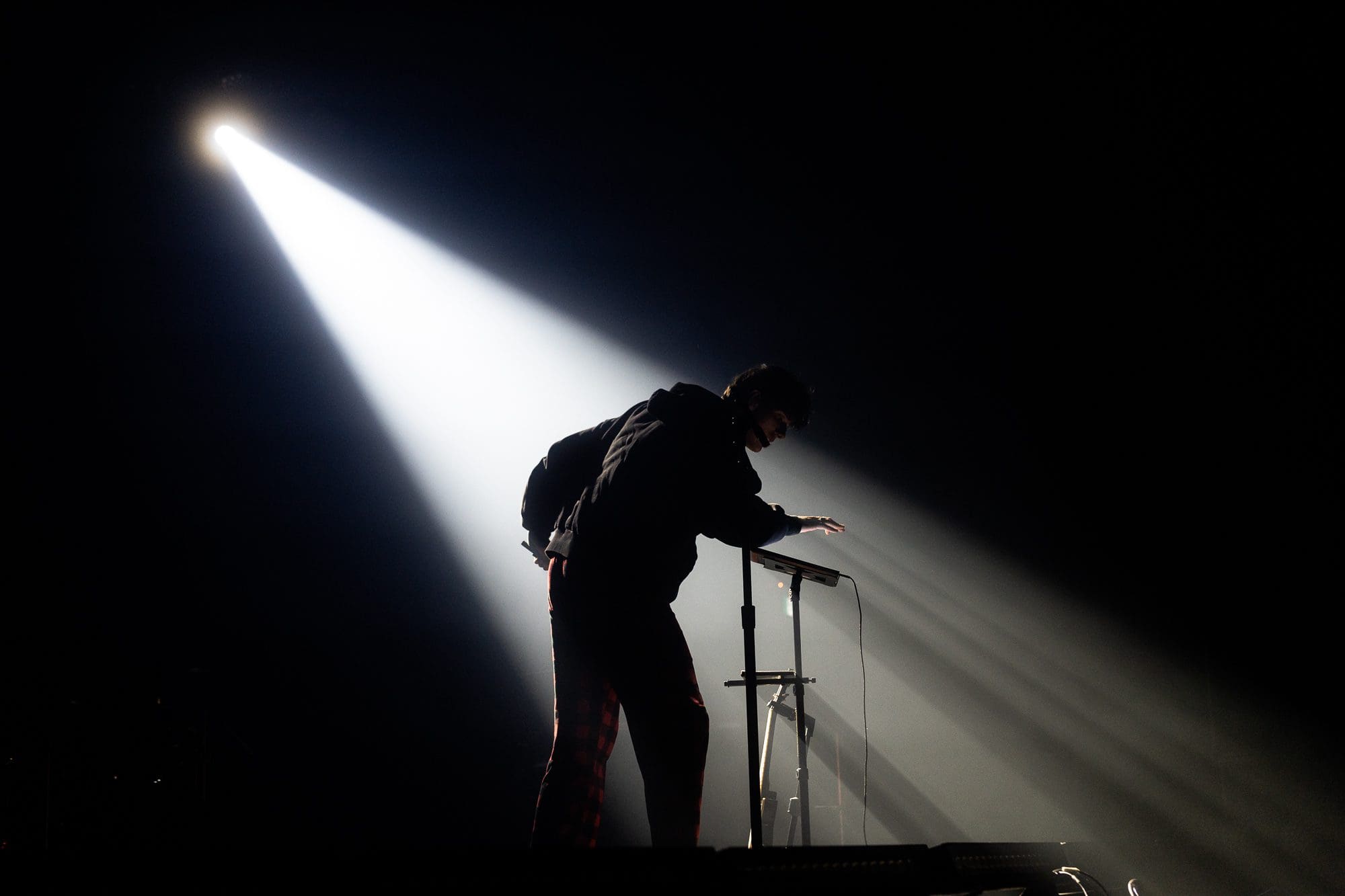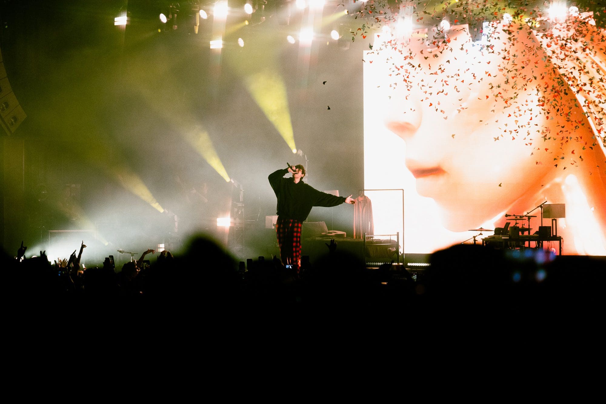 Everyone was greeted by a light beam with an AI voice like Alexa or Siri, which explained the theme and how his set would flow through different moods and emotions broken down into four segments. Also, the stage setup mimicked his room with a bed, drum kit, and a desk with his keyboard, reminiscent of where he would have written the songs he had composed since he started his musical career.