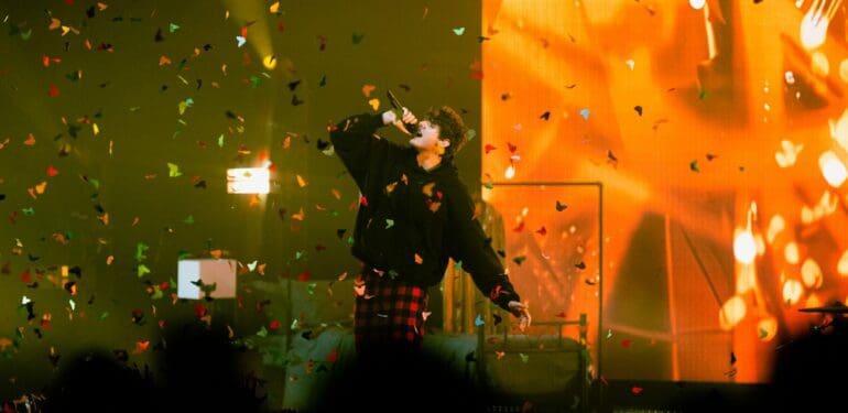 The next segment was followed by this what sadness feels like. It was highlighted by a cover of So Will I by Hillsong UNITED: which related his success to love and his belief. Briefly shifting to the final theme, he performed this is what falling out of love feels like. Premiered an unreleased track featuring the Jonas Brothers, titled this is what growing old feels like. To much anticipation, the moment everyone waited for, JVKE headed to the keys and started playing a familiar intro. The crowd went wild as they heard golden hour being played. Everyone in attendance could not help but sing along to the infamous track. JVKE had one last trick up his sleeve at the show’s end. After performing, i can’t help it; he thanked everyone and left the stage. Satisfied, everyone began to make their way to the exits until a phone conversation between JVKE and his mom played alerting for an encore. He ran back to the stage and closed off with Upside Down to the delight of the attendees, especially the younger crowd. Everyone jumped for joy as they enjoyed the show’s last moments.