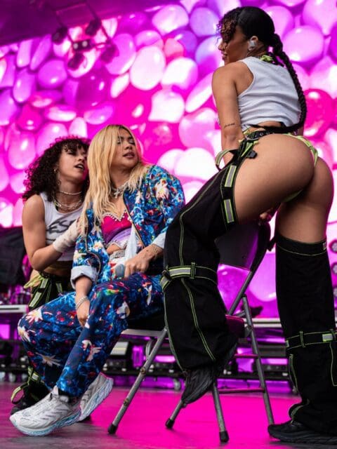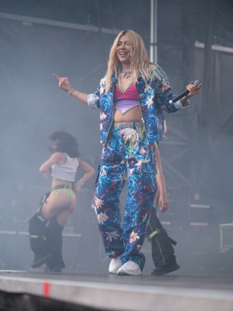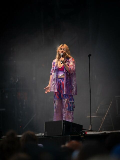 At the top of the day, leading into night, Girl In Red‘s performance ended this inaugural lavender wild festival. Fresh off a run of shows with Taylor Swift, Marie Ulven and band burst onto the stage hammering through You Stupid Bitch from if i could make it go quiet. The album featured most in the set that ended the festival with fireworks.