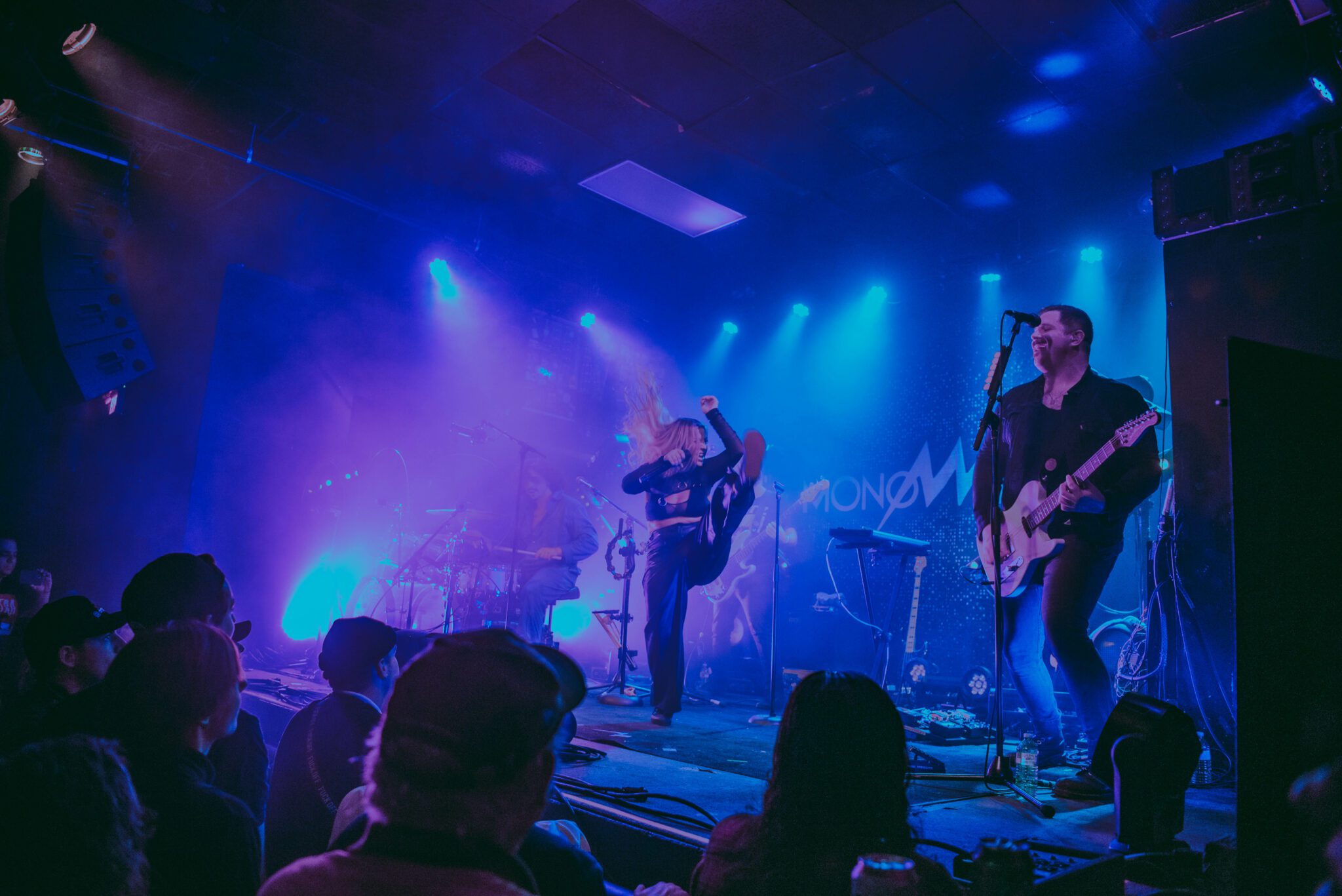 Toronto alt-rock group Monowhales packed Lee’s Palace on October 21, 2022, to deliver an exhilarating performance on the Tunnel Vision tour. Released in September 2022, Tunnel Vision is the band’s latest album, a project that sees Monowhales stepping fully into their distinct sound and charisma. As the band prepared to play for an excited hometown crowd, we squeezed into the cozy green room at Lee’s Palace to have a chat with Jordan Circosta, Sally Shaar, and Zach Zanardo about their growth as a band and what playing home in Toronto meant to them on this tour.