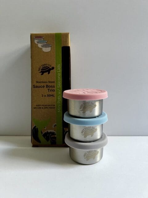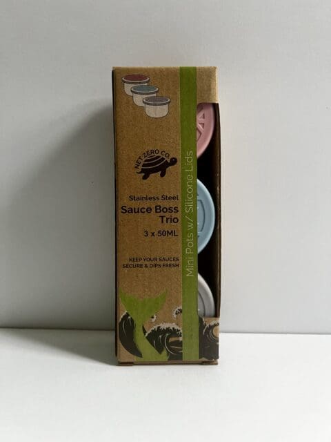 These airtight containers fit neatly in any Net Zero Co. Munchie Box, picnic basket, lunchbox, or beach bag without causing spills or leaks. They come in a Pack of 3, each holding 2oz / 50mL.