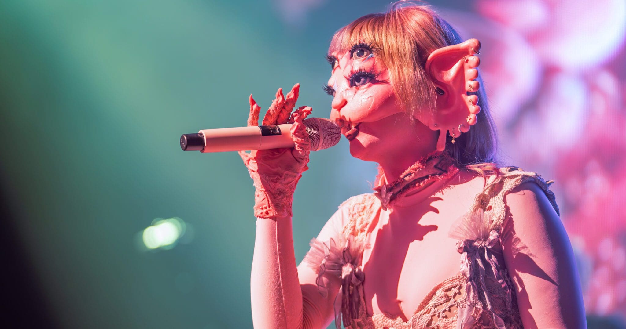 The set followed the track order of the Portals album. It began with Death, Void, followed by Tunnel Vision, where two dancers performed a beautiful contemporary dance following Martinez’s voice and band. After that, the stage was filled with purple and green lights when Light Shower played. Then, a giant shell was set in the middle of the stage, where Melanie sat to sing, swinging her legs back and forward while the dancers moved around her. After the magical fairytale scene, the stage mood turned dark when a giant spiderweb arose. The purple and green lights were replaced with red and blue for the performance of the song, Spider Web.