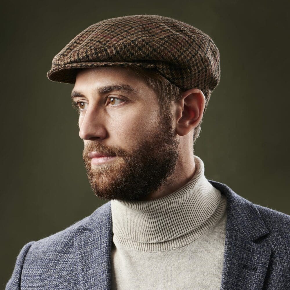 If you’re looking for something a little fancier than a beanie, you should try a paperboy cap. My grandfather always wore one every fall and into the winter, and every time I see this style of hat similar to the brown navy checkered moda flat cap shown above, these caps will make a statement and keep you warm.