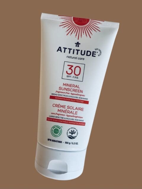 For those with skin that is also sensitive to any fragrance, we love the ATTITUDE 30 SPF Mineral Fragrance-Free Sunscreen. Like the Blue Lizzard products, it goes on easily, works well and protects for hours.