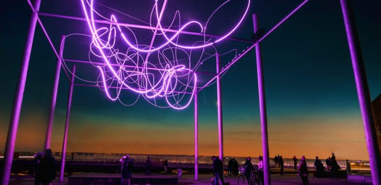 Co-produced by Fjord Studio (Oslo), the team behind the groundbreaking Norwegian light festival FJORD OSLO, the artworks are part of a global discussion around sustainability. From climate change to Covid-19, the manifestations of humanity’s influence are becoming impossible to ignore. But what is the nature of that impact? What will our shared future be? Do we have the power to ensure it is positive? NORDIC LIGHTS is designed to ask the viewers to contemplate these tough questions while experiencing joy!