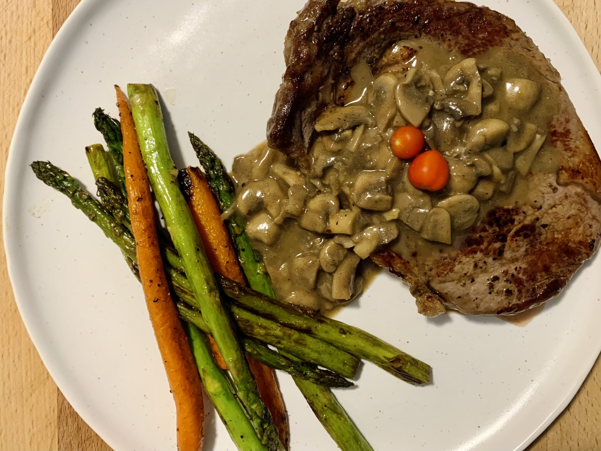 Sourced once again from Papa Earth, this ribeye was like butter, but what made it even more delectable, having it with some pan-fried asparagus, carrots and homemade mushroom gravy.