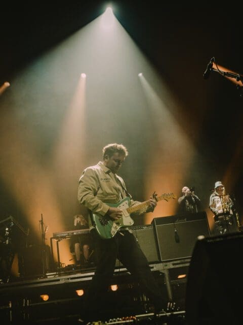 Sam Fender and his band entered the stage to a sold-out crowd of almost 8000 people who were ready to sing and rock out the night. From the moment he began performing the first song, “Angels in Lothian,” the crowd was singing the words loudly as Sam effortlessly sang with his distinctive vocals. Sam’s setlist included a balanced mix of slow and catchy songs from his discography. One of the surprises of the night was Sam playing a new song called “Talk to You,” a rocking tune with a guitar riff solo that will be included on the deluxe version of his latest album, People Watching, to be released soon.