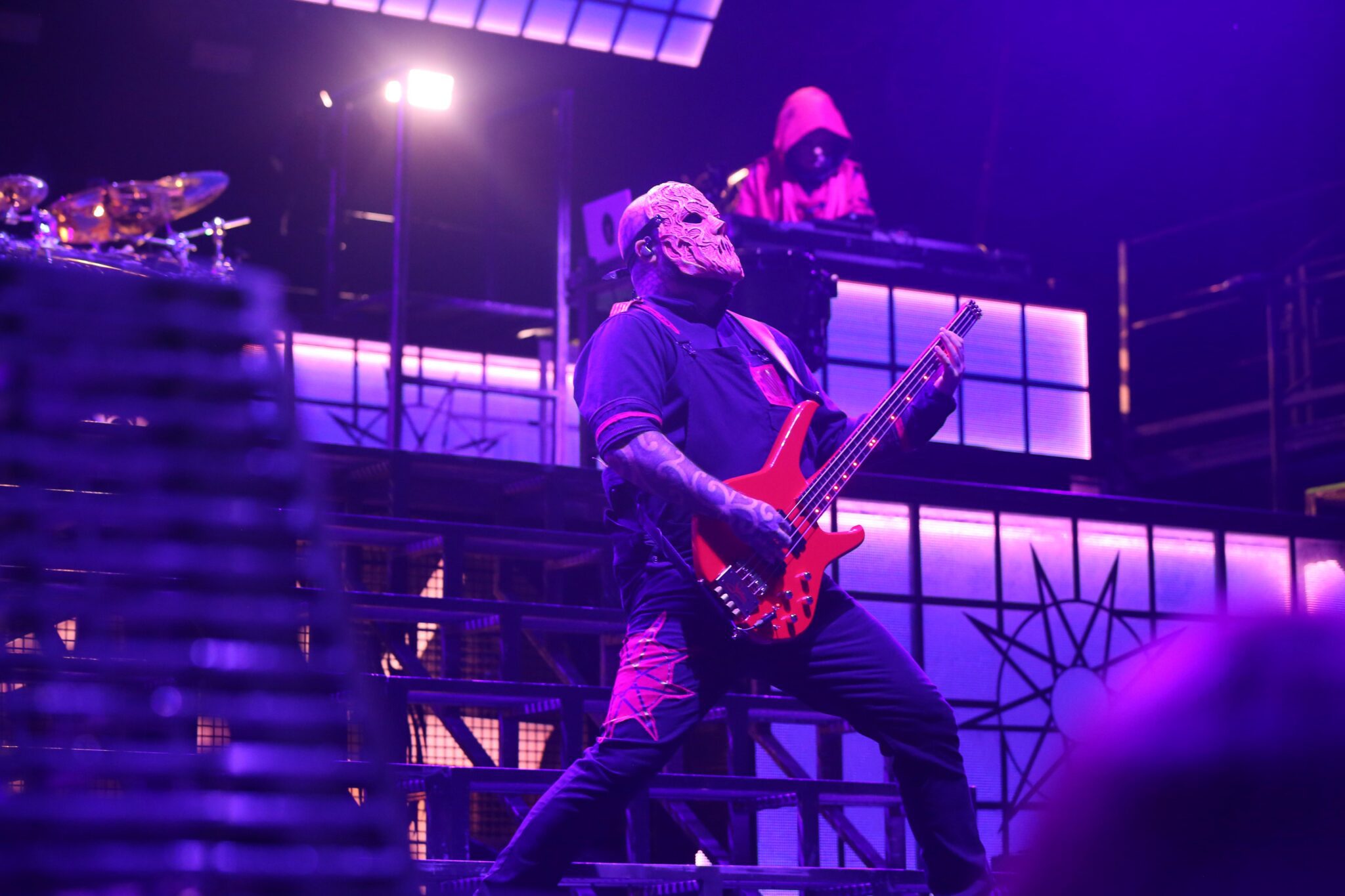 Bleak and nihilistic, the band is also unequivocally theatrical. Decked out in a pattered outfit and skull disguise, frontman Corey Taylor (now nearly 50 years old) was made to look like he had just stepped off the set of The Texas Chain Saw Massacre. Same for the remaining idiosyncratic lineup, consisting of three guitarists, a keyboard player, a DJ, and powerhouse drummers. Each comes distinctly committed to their own look, projecting terrifying variations of nightmares brought to life.
