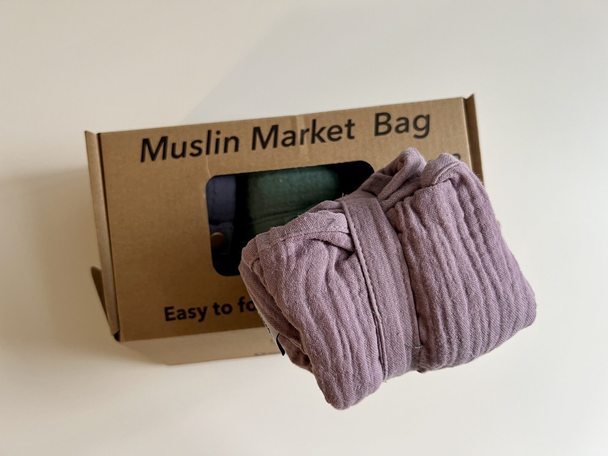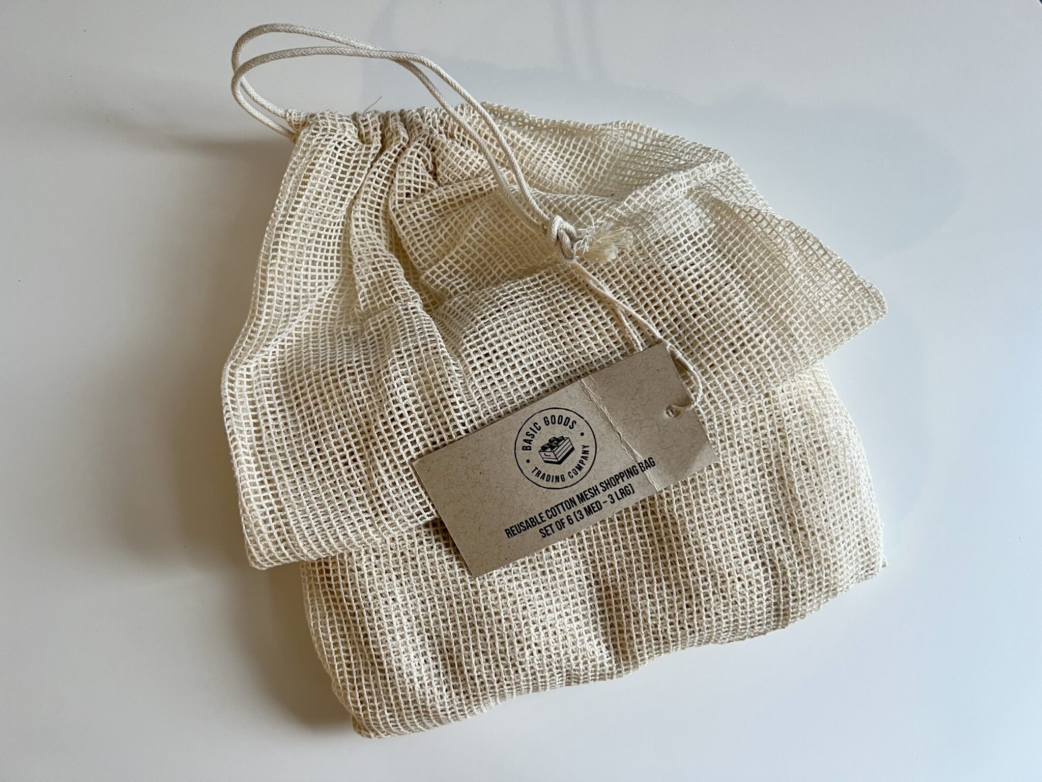 If you’re not a fan of mess bags, then a great option instead is muslin market bags. They snap right back up when you’re down with them, so you can easily sock them away in your backpack or closet.