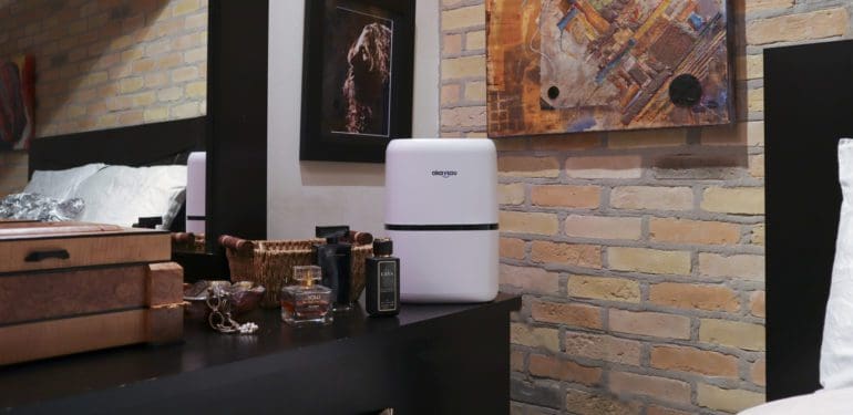 The Okaysou AirMic4s is a compact and modern-looking air purifying device that’s about the size of an espresso machine, that works best in a small to medium-sized room. The AirMic4 claims to clean 99.97% airborne particles up to 0.3 microns, including dust, mold, pet dander and other irritants, from the air. The unit can also emit a UV light for further air purification.
