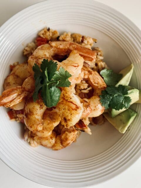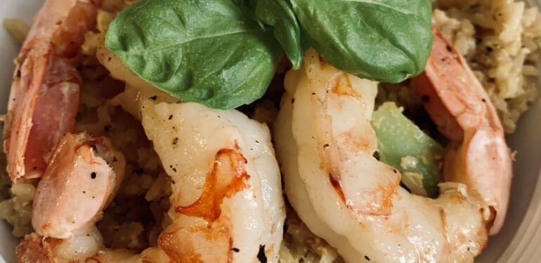 The perfect dinner with big juicy, buttery shrimp. Yum!