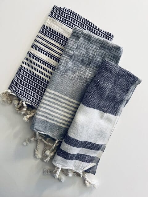 So, we grabbed two bath and beach towels, two hand towels, kitchen towels and a pack of waffle facecloths from Pokoloko and got to testing these 100% Turkish cotton towels.