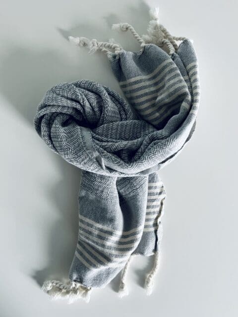 A mid-weight towel that will add style and texture to any room. This towel not only looks great, it feels lovely to the touch as well. It also transitions from inside to out, from towel to scarf, which we love.