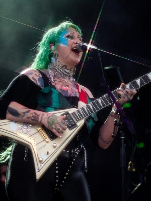 ADDICTED decided after the announcement that it would be one of the summer fests we would cover. A short hop downtown Toronto flight to nearby Chicago Midway, made the decision easier. Eventually onsite, it was obvious that this was a well-thought-out event. This was evidenced by a quick moving security line to ample water stations and portolets, even the food, drink and vendors were fairly tuned to the crowd. After some Friday night social media complaints of only a single free water location and sound bleed from one of the three stages to another, the festival team responded overnight to stagger the set times a bit and add another water station. That was a very impressive bit of customer service that proved organizers were listening. The festival grounds were spread out so you were never in the crush of a crowd unless intended. As a veteran of multiday festivals, it was a relief to find that the portable toilets had been pumped and cleaned each night. Food and drink pricing was as would be expected. $5 plastic bottles being a norm, this was revised for the better as Liquid Death, an independent water company was sold in half-litre cans as opposed to plastic bottles. It was a small step to green the festival but it didn’t go unnoticed. The most egregious festival grift was the $12 ChocoTacos being sold by an ice cream truck, the only purveyor of sweets. Given the cannabis-friendly nature of the event in a recreationally-legalized state, you’d think more munchies would’ve been available.
