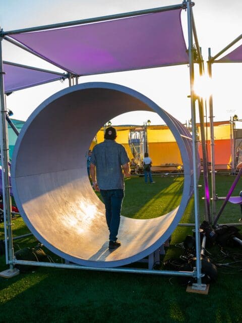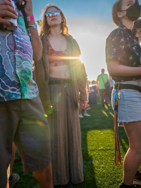 Day Three came and with it some clouds. Providing a break from the heat, threats of rain were reported. The middle to top billing of the day started with Nashville’s’ rock and soul’ belter, Maggie Rose and her amazing band. Continuing the spotlight on modern bluegrass and Americana, the Dreamfield hosted Kitchen Dwellers and The Infamous Stringdusters featuring Molly Tuttle. Later in the evening The Wood Brothers and Greensky Bluegrass were scheduled to close the stage for 2022. Bass prodigy, Blu Detiger hit the Vega stage. Ironically, at 4:20, a message went out on the festival app (a great addition) and on the screens that concerns regarding strong winds were pausing performances on all stages and closing the gates. They started back up quickly but it was confusing to figure out who was actually going on. Hiatus Kaiyote got to perform making me very happy. Due to proximity, many rushed to the Canopy to catch Dawes. After only 4 songs, another pause occurred, this time everyone was urged to evacuate into the stadium due to the wind. This pause was longer but it felt like the festival would pick back up. Heading back to Vega, hopes that Kamasi Washington would soon take the stage diminished when the crew tarped and then tore down the gear onstage. After lightning was seen in the distance and the PA speakers were lowered to the stage, it was clear the festival was closing prematurely. Sure enough, an announcement came over all the speakers saying that the festival was ending immediately and everyone had to exit. Despite the shared disappointment, the crowd headed for the gates to head home or to whatever home base they were using for the weekend. Like many, I headed to the shuttle bus stand to head back to the airport hotels. Amazingly, I was back in my hotel room 45 minutes after the announcement.