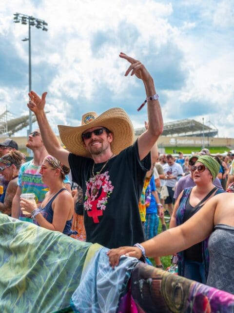 With a gold star in the environment and atmosphere box, it’s onto the performances. Racing from hotel to festival and getting the first-day jitters and figures settled, it was off to catch Austin’s explorative rockers, White Denim. They played a tight set in the bright daylight. At The Canopy stage, which sounds as it was, a respite from the hot sun, the crowd was treated to songs by our hometown boys, City and Colour. Playing to a moderate-sized crowd, the numbers proved that there were more fans than curious watchers of this fine set. Back at the Vega stage, Yves Tumor opened the show with their hit, Jackie. Modern funkers, Lettuce pounded out songs including Mt. Crushmore and Phyllis. Many people escaped the sun and heat by heading into the air-conditioned and roomy Laser Dome, which featured DJs of all varieties. As the sun finally fell, the nighttime entertainment began. Sadly, we were notified that Animal Collective wouldn’t not be appearing as singer Avey Tare had lost his voice. But we cheered back up with sets from the high-energy St. Paul and the Broken Bones, the immobile The War on Drugs and the festival set that drew many, Phil Lesh and Friends welcoming up-and-coming local musician Jeff Tweedy and avant-guitar whiz, Nels Cline. Tweedy started the show with the stellar selection, Dire Wolf. Artist at large, Margo Price joined the Friends a couple of songs. Tweedy closed the second set and SR Day One with Ripple.