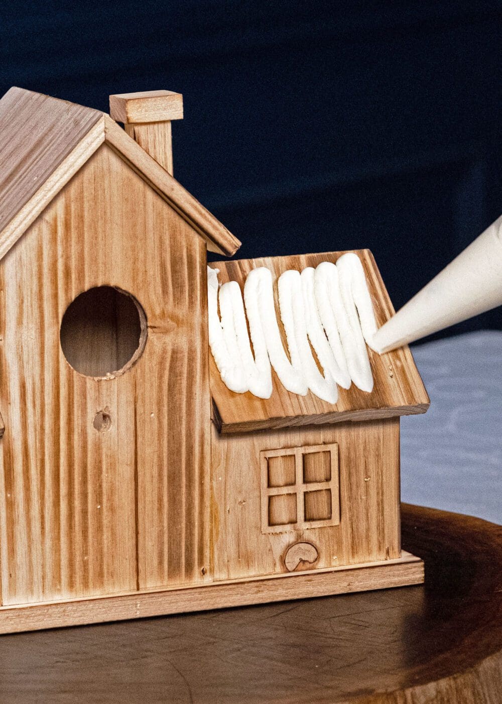 Pipe a path for the front door and top with ground candied pecans, then have fun filling the space on the board with all your favourite charcuterie ingredients!