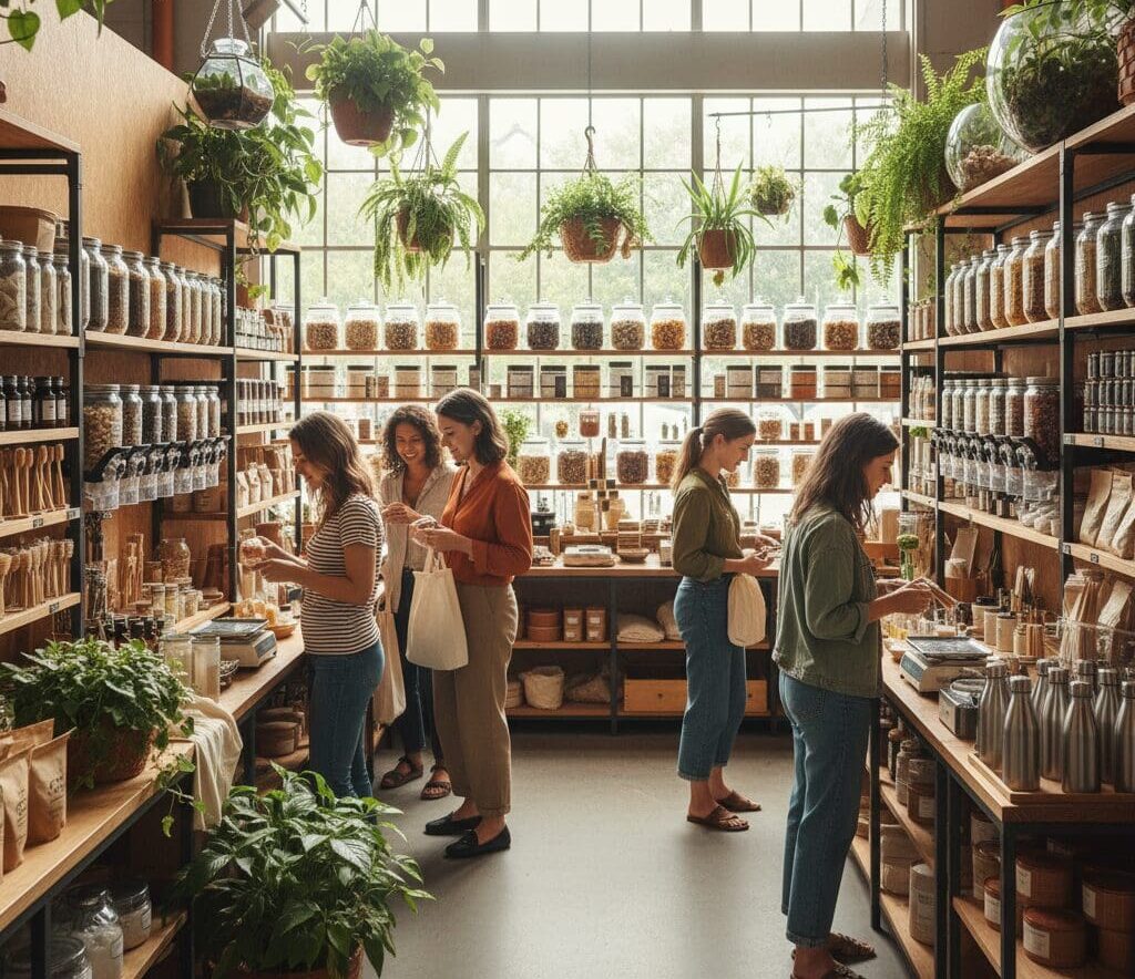 people shopping at an eco-friendly store