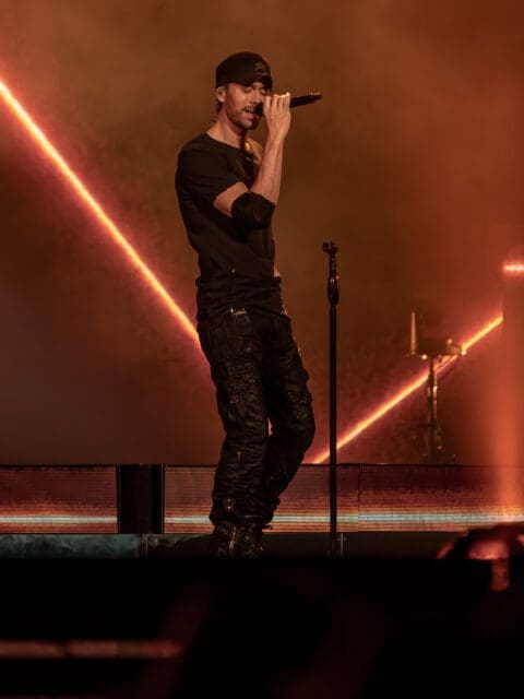 At 10 p.m., it was time for the final act. Like Pitbull, Enrique Iglesias appeared onstage amid a haze of smoke and coloured lasers in his classic performing outfit—black parachute pants, a black shirt, and a classic baseball cap. The set opened with Tonight (I’m Lovin’ You). Like that of fellow artist Ricky Martin, Iglesias’ set was a mix of moods. He sang his Latin party anthems and a few of his most iconic Spanish ballads, like Cuando me Enamoro and Loco, on a secondary stage lit with floating candles. Unlike Martin and Pitbull, Iglesias had the main and second stages joined by a runway that allowed him to run back and forth and interact with the fans in the arena. At the end of his set, the Spanish singer closed the night with his 2014 hit Bailando as white balloons bearing his initials were released across the Scotiabank Arena.